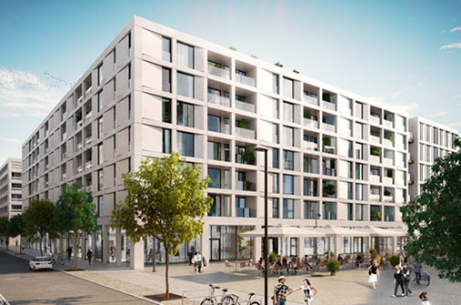 This unique building mixes elegant design and circular ambition into a beautiful, well-thought-out composition of homes, squares, streets, and space for creative activity. This is an urban oasis in the bustling Amsterdam neighborhood, to experience the friendly warmth of the vibrant city through the many meeting places and shared facilities.